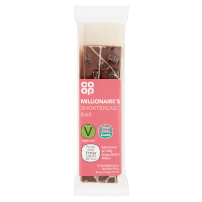 Shortbread topped with salted caramel and milk chocolate, drizzled with white chocolate.