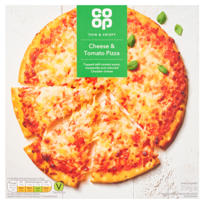 Pizza base topped with tomato sauce, mozzarella cheese and Coloured Cheddar cheese.
