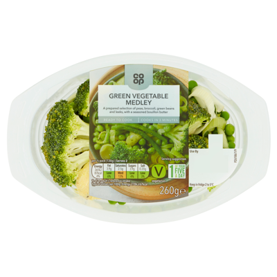 Peas, broccoli, green beans and leeks with a bouillon butter.