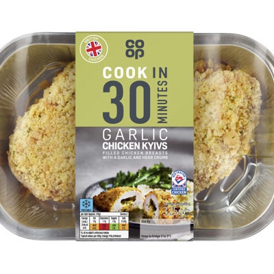 British chicken breasts stuffed with garlic and herb butter and coated in a crunchy garlic and herb crumb