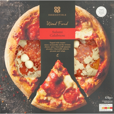Pizza base topped with tomato sauce, mozzarella cheese, Fior di Latte, Charcuti® Spianata piccante salami, Charcuti® Salsiccia piccante salami and 'Nduja paste.