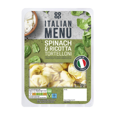 Free range egg pasta parcels with a ricotta cheese and spinach filling.