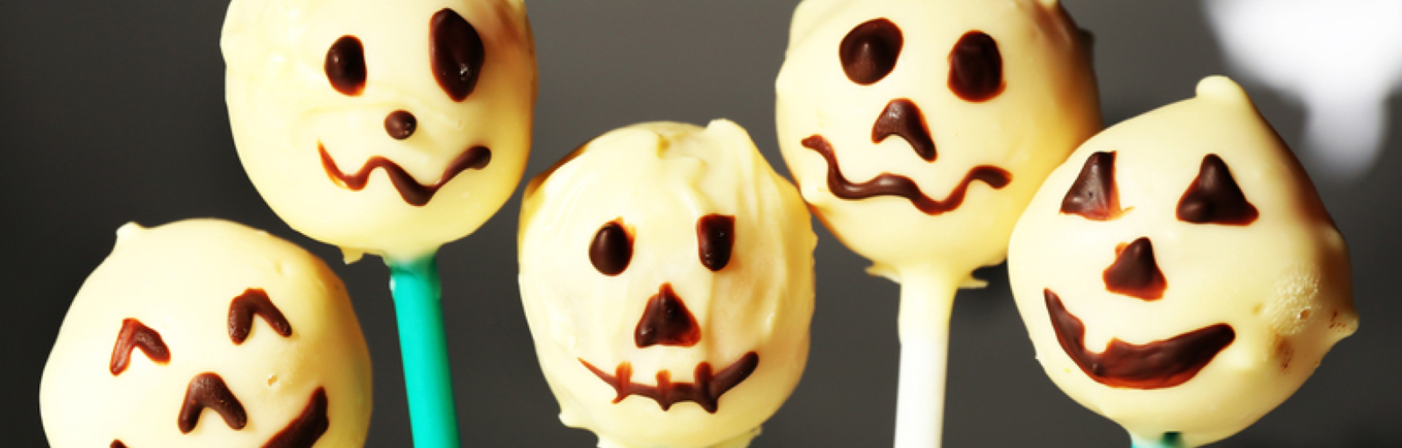 There’s no way anyone can resist these white chocolate & choc-chip centre Halloween heads-on-a-stick!
