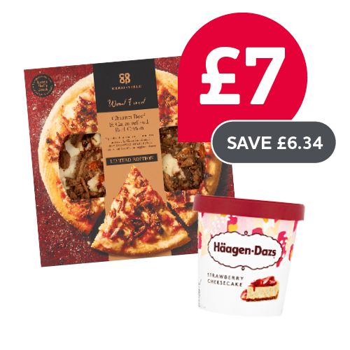 Co-op irresistible chianti beef pizza / Co-op irresistible margherita pizza / Haagen dazs strawberry cheesecake / Haagen dazs vanilla / Haagen dazs salted caramel/ Haagen dazs belgian chocolate / Haagen dazs cookies & cream / Haagen dazs lotus caramel biscuit / Haagen dazs pistachio & cream / Haagen dazs tiramisu/ Haagen dazs vanilla caramel brownie