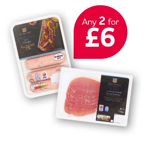 Co-op Irresistible British Dry Cured Unsmoked Back Bacon/ Co-op Irresistible Pork & Onion Sausages / Co-op Irresistible Lincolnshire Sausages / Co-op Irresistible Pork Sausages / Co-op Irresistible Cumberland Sausages