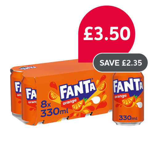 Sprite Regular 8pk / Sprite No Sugar 8pk / Fanta Orange 8pk / Fanta Orange Zero 8pk / Fanta Lemon 8pk / Dr Pepper Regular 8pk / Dr Pepper Zero 8pk