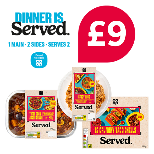 Co-op slow cook mexican chicken/ Co-op loaded mexican chicken rtc/ Co-op chunky beef chilli / Co-op taco shells / Co-op mini corn tortillas 8pk / Co-op plain tortilla 6pk / Co-op sweet potato fries / Co-op tex mex multipack