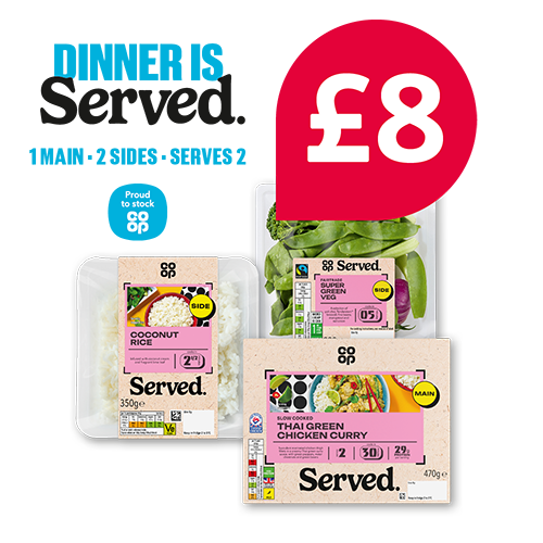 Co-op RTC Chicken Katsu 485G / Co-op Korean Chicken Thighs 420G/ Co-op Teriyaki Beef 346G/ Co-op Char Siu Pork Shoulder 400G/ Co-op Thai Green Chicken Curry 470G / Co-op Bang Bang Cauliflower Curry 475G / Co-op Egg Noodles 275G / Co-op Udon Noodles 275G / Co-op Jasmine Rice 350G / Co-op Coconut Rice 350G / Co-op Bao Buns 168 / Co-op Served Taste of Asia Duck Spring Rolls 5X18G / Co-op Fair Trade Tenderstem Broccoli Tips 160G / Co-op Pan Asian Salad Bowl 230G / Co-op taste of asia pink crunchy slaw 300g / Co-op super bright stir fry tray / Co-op super green stir fry tray
